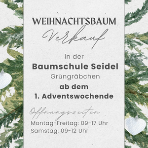 Ob Nordmanntanne oder Blaufichte – ab dem 1. Adventswochenende können Sie bei uns Ihren Weihnachtsbaum kaufen, der perfekt zu Ihrem Zuhause oder Büro passt.